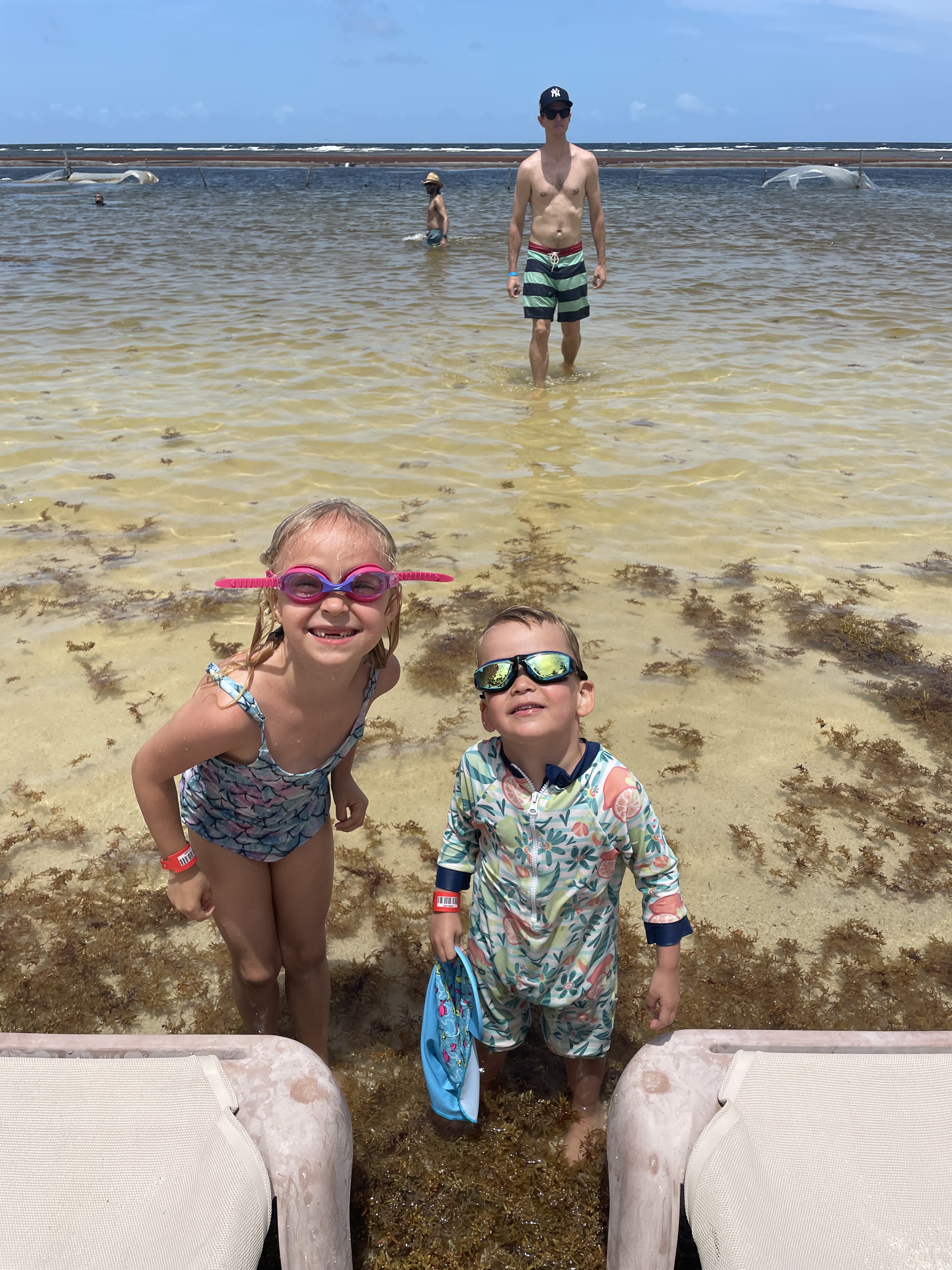 - The beach had a lot of seaweed, and the water was a weird yellow color. I think they have carpet or something under the sand which is where the color comes from.