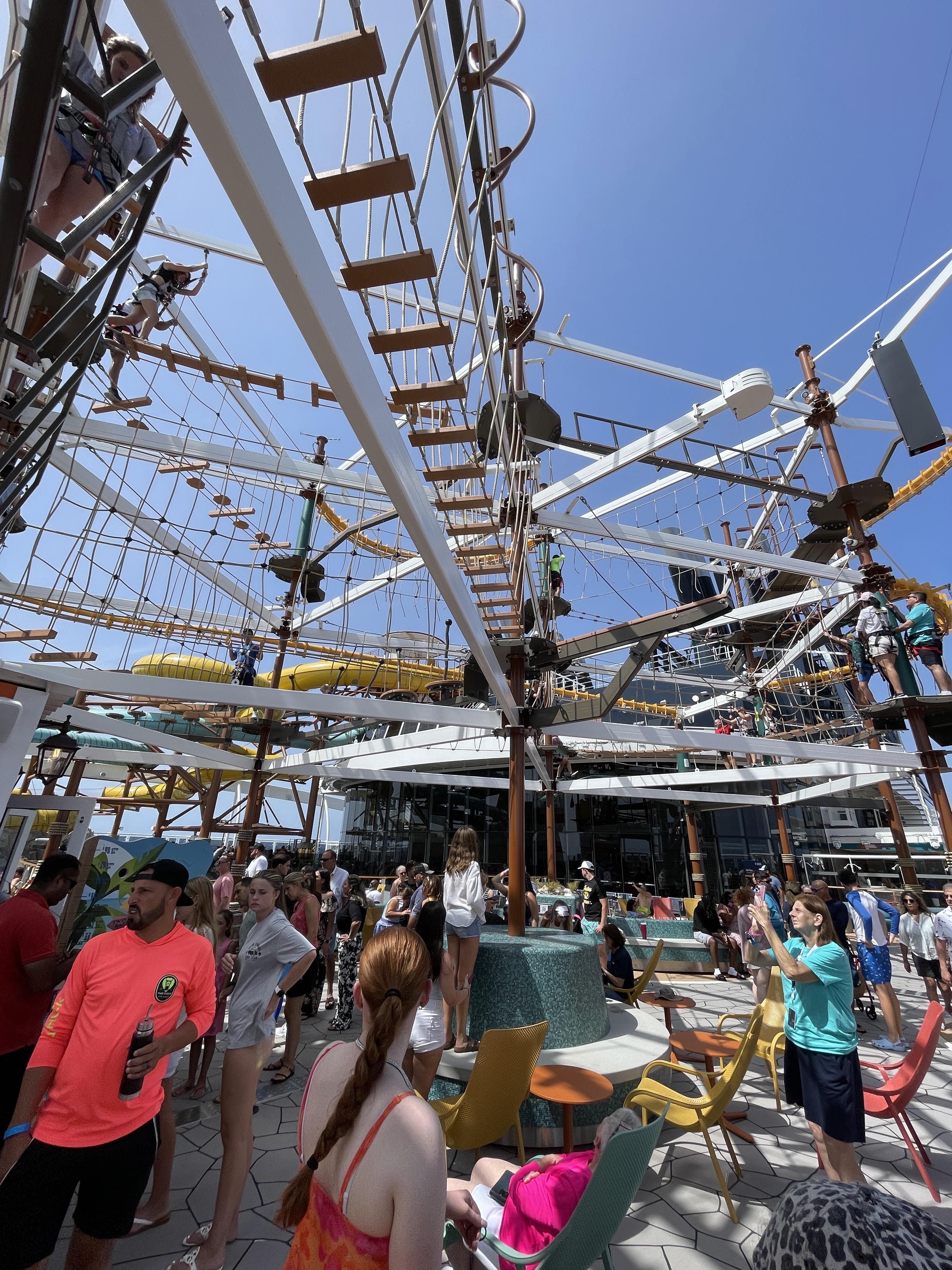 - Surprise Charges: I felt slightly nickel-and-dimed, with bumper cars costing an extra $7, ice cream for $4.50 by the pool, extra cost for the Cliffhanger swing, and over $100 of service fees per person once I’m on the ship (read ~$500 for my family of 4. Can’t you just build that into the cost of what I initially paid?!)